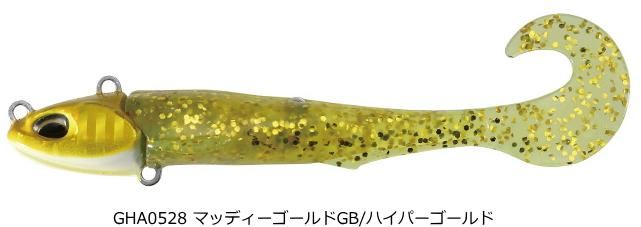 最大の特徴はフックアイを腹側に1箇所と背中側に2箇所設けてあります。ボトムを攻める場合は背中のアイを選択することによりボトムをダイレクトに攻めることが可能。3インチコンパクトボディサイドにはフィンを設置。これはテールの動きから連動発生するボディのロールアクションを抑える役割とフォール時間を長く取れるスライドフォールが可能となり、フォール中のバイトチャンスを増やすことが出来るようになった。ヘッド形状はハウルヘッドに比べ扁平形状となっているため、ハウルよりもスローにリトリーブすることが可能となっている。マゴチに効果的なリフト&フォールではヘッド+フィンが抵抗となり綺麗なカーブフォールでアピールしてくれます。