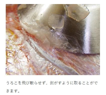 ●うろこの飛び散りを防ぎ、全方向対応可能な円形ブレード設計です。