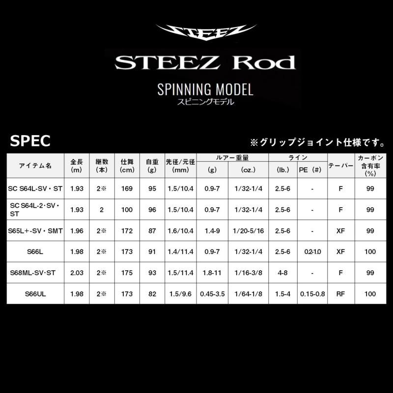 ダイワ スティーズ スピニングモデル SC S64L-2・SV・ST / バスロッド daiwa 釣具 【本店特別価格】