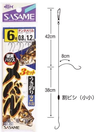 ささめ針 メバルうき釣3セット D-302 鈎8号 ハリス0.8号 / 仕掛け つり具 メール便可 【本店特別価格】