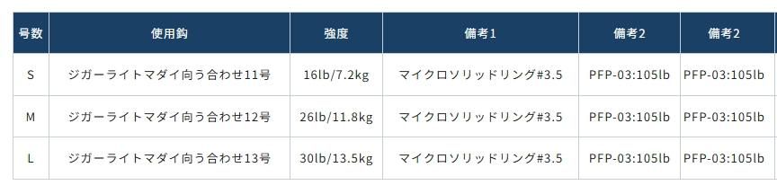 タフワイヤー素材の「ジガーライトマダイ向こう合わせ」を採用。