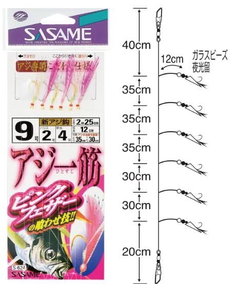 ささめ針 アジ 一筋ピンクフェザー S-612 鈎13号 ハリス5号 / サビキ 仕掛け つり具 メール便可 【本店特別価格】