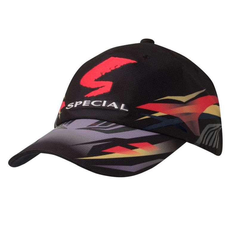 偏光グラスが滑り落ちにくくするため、つば上とサイドにジェルプリントを搭載。