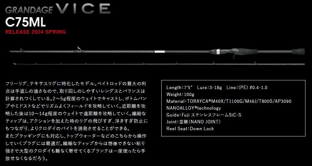 商品情報 アピア APIA GRANDAGE VICE / ソルト ルアー ロッド 釣竿 黒鯛