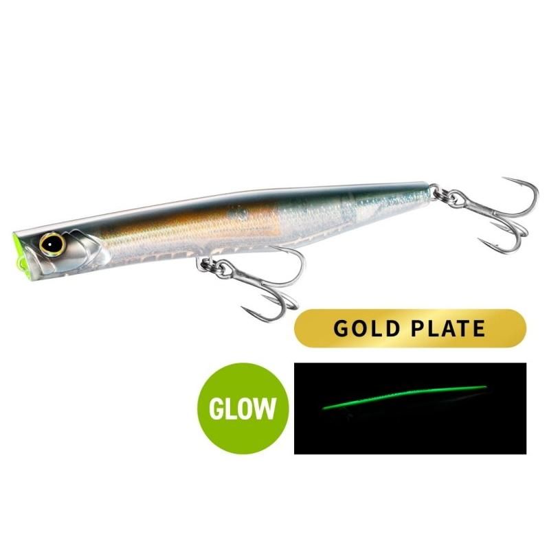 「コルトスナイパー ガブロ175F フラッシュブースト」は、スリムシルエットの青物用ポッパー。ほぼ垂直姿勢で浮くのが特徴で、ペンシルベイトでは誘いづらい、海面が荒れた状況でも安定したアクションができるように設計しています。また大きな特徴と言えるのが、ポッピングノンストップジャークと呼ばれるテクニックでの使いやすさを重視していること。水面から水面直下にかけて、音と泡で連続的に誘うことで、小魚がパニックをおこして逃げ惑うような姿を演出することができます。警戒心が高く活性の低い青物の捕食スイッチを刺激しつつ、ルアーをなるべく見切らせないようにバイトへ持ち込むことが可能です。