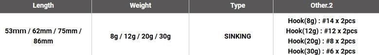 逃走する小魚のシルエットを忠実にイミテートした水平スイミング姿勢は、いかなる速度においても一定のロール軸を保持、生命感あふれるハイピッチバイブレーションを発生し、フィッシュイーターの捕食本能を猛烈に刺激。