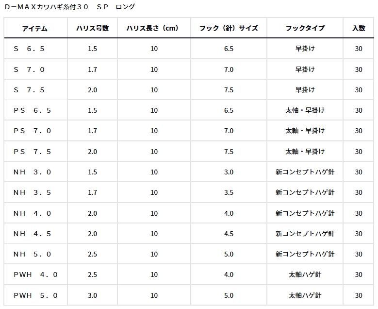 ダイワ D-MAX カワハギ糸付30 SP ロング PWH 4.0 ハリス 2.5号 フックサイズ 4号 フックタイプ 太軸ハゲ針 / 鈎 釣具 メール便可 【本店特別価格】