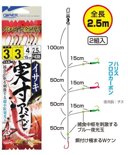 オーナー 船イサキ実寸アミエビ4本 F-6306 針2号 ハリス2号 / 船釣り サビキ 仕掛け つり具 メール便可 【本店特別価格】