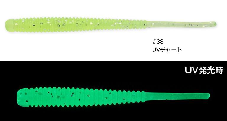 アジングをはじめとするライト・ソルトゲームに最適なストレートワーム。フック用下穴を途中まで設けることで、まっすぐに刺しやすい利便性と裂けにくい強度を両立しています。