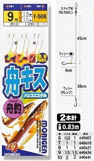 もりげん 舟キス ウィリー付 2本針 3組入 F-506 針9号 ハリス1.5号 / 船釣り キス仕掛け つり具 メール便可 【本店特別価格】