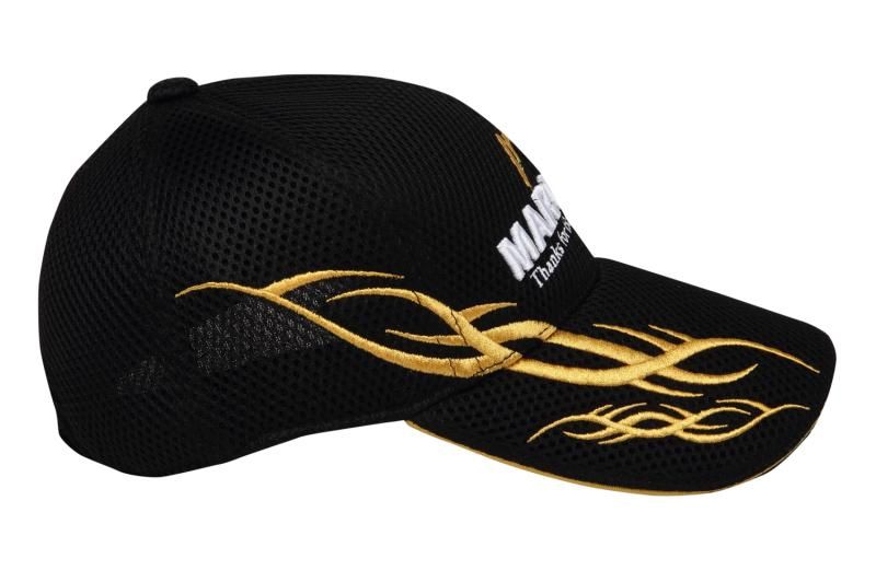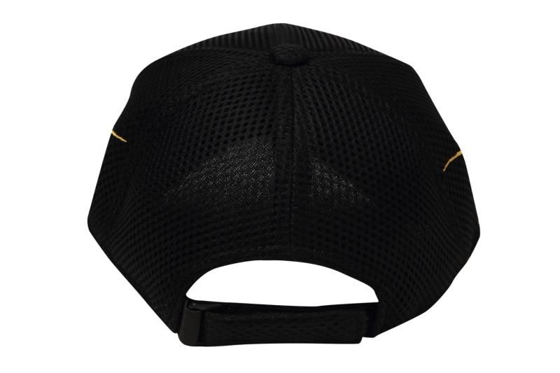 左右にまで伸びたトライバル柄のラインが美しいオールメッシュタイプのキャップです。サイド部は耳にあたりにくいアーチカット仕様となっており、深く被れてしっかりとフィット。