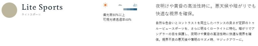 フラットな視界で違和感が少ない4カーブレンズを、立体的でスポーティーなデザインに。パーツごとに耐久性や掛け心地を吟味し、複数の樹脂素材を組み合わせて設計。遮光性を高めるサイドフレーム、柔軟なβチタン製バネヒンジなど必要な機能はもれなく搭載。調整範囲の広いクリングスや金属芯が内蔵されたモダンで、顔に合わせた最適なフィッティングを。 4カーブレンズ採用モデルは、度付き偏光サングラスのオーダーメイドにも最適。