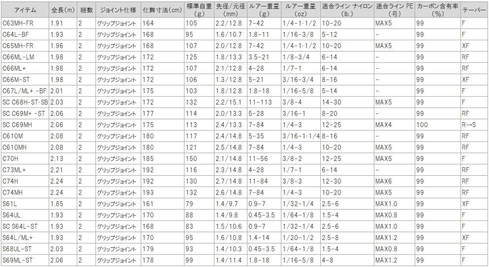 ベイトフィネスロッド・19BLX SG 641LFBの血統を汲み、ベリー〜バットをややマイルドなテーパーに仕上げたことで軽量ルアーのウェイトを乗せて投げやすく、キャスタビリティを飛躍的に向上。