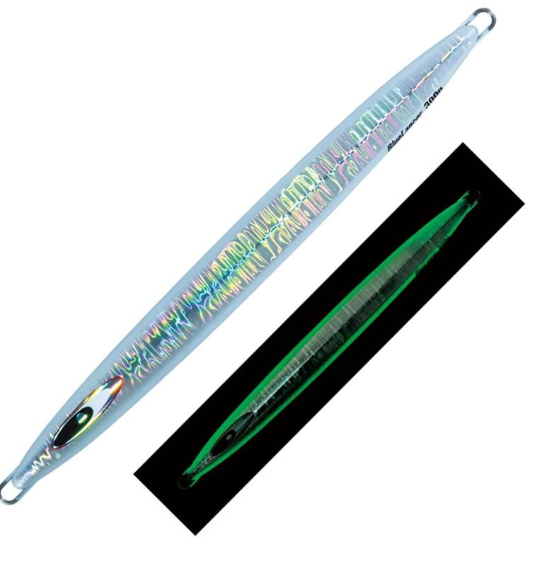 BlueLancer“ブルーランサー”ビンチョウマグロをジギングで狙う、トンボジギング専用設計で船を流して行うドテラ釣法に完全対応したメタルジグです。トンジギに求められる「抜けの良さ」「フォールスピード」を両立。ジャークアクションは首振りスライドアクション、フォールでは垂直スピードフォールとスライドフォールがラインの角度で変化します。