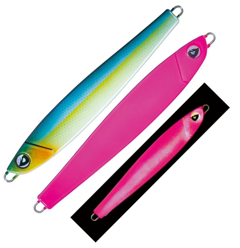 ワンピッチ・ハーフピッチショートジャークでテンポよく、広範囲に魚を探すのに有効なタイプ。フォールは、イレギュラーなスライドアクション。ジャークすると、移動距離の少ないキックバックアクションと、平面形状のデザインがフラッシングの強さでタチウオに猛アピールします。左右対称タイプなので、時折見せるイレギュラーアクションが、タチウオの捕食スイッチをONにさせます。