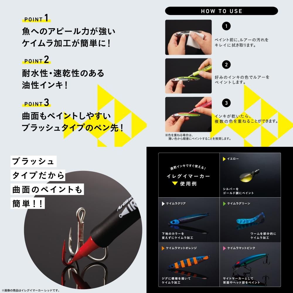 ルアーへのペイント加工が自宅や釣り場で簡単&スピーディーにおこなえるマーカーです。