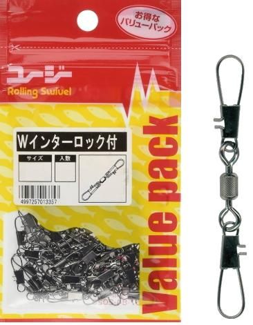 ユージー UG 徳用 Wインターロック付 ローリングスイベル (50個入) 黒 #8 / スナップ サルカン 釣具 メール便可 【本店特別価格】