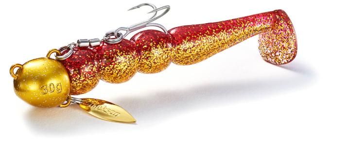ボートフラットゲームに完全対応し、サーフや堤防からでも使用できる場所を選ばない本格仕様。独特の団子型ボディーはうねるようなウォブリングを発生させ、砂モノの捕食本能へ強烈にアピールします。状況やベイトサイズに合わせて団子部分をカットし、ボディーサイズやアクションを変化させる事が可能。腹部の小型ウィローブレードがワームでは出せないフラッシングでさらにアピールします。ヘッド形状はシンプルなラウンドタイプで、ボトムバンプやズル引きでのボトムタッチが分かりやすく、水受け抵抗もある誰もが使い易いシンプルなボディーバランスを追求。フッキング後はクレンアシストが柔軟に回転・追従する事によってバラシを大幅に軽減します。ボートフラットゲームでバーブレスフック仕様にした際も魚を傷つける事無く確実にキャッチする、砂モノを極めるための一本です。