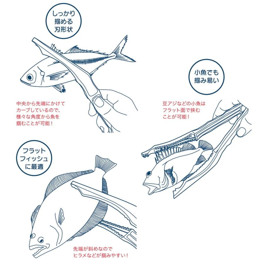 様々な角度から魚が掴みやすくしっかり捕らえる歯形状。