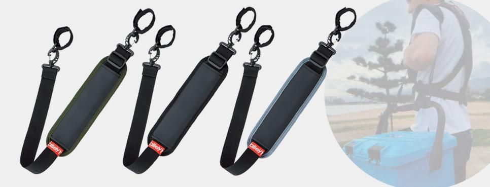 大型タックルボックス、クーラー等、様々なアイテムに装着可能な、ショルダーベルト。
