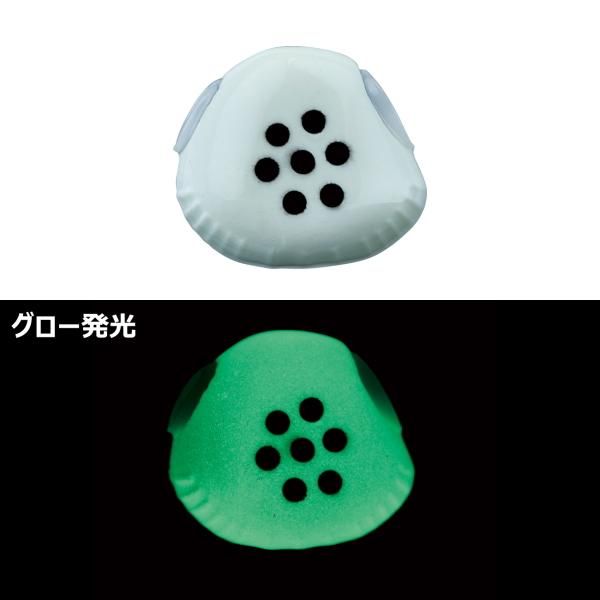 側面、正面、底面ともに三角形を基準に曲線でつないだ独特のデザイン。フォール姿勢の安定したヘッド形状で、リフト時にもブレが少なく潮の抵抗も軽減し、操作性抜群。底面部分にはボトムタッチバンバーを採用し、着底感度アップとともに着底時の塗装を保護。リーダーを保護するため、ラインホールには高強度の樹脂パーツを組み込み、フック側はスイベルソケットシステム搭載で、遊動式鯛テンヤだけでなく、鯛ラバ用シンカーとしても利用可能。着底姿勢が安定しているので、ボトム付近でのバイトが多いシャローエリアでは非常に有効な武器となる。