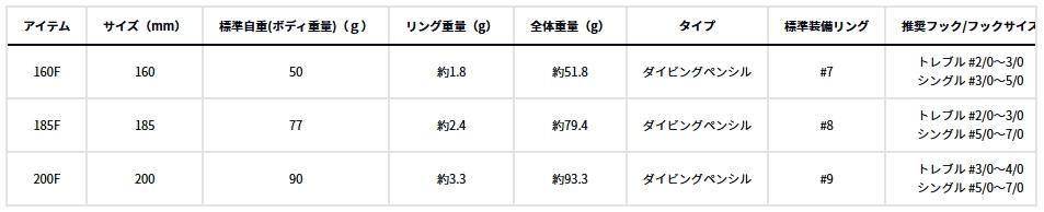 また、背面カウンターウエイトを搭載し、浮き上がりの姿勢にこだわり、水面が荒れていても同じ姿勢で浮き上がるように調整し、水面のコンディションを問わない水中へのダイブを可能とした。追求したアクションは立体螺旋S字アクションで、ボディ全体がワイドに動き、広範囲から魚を引き寄せる。