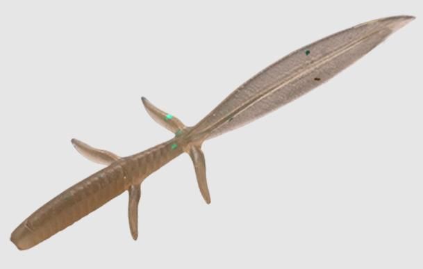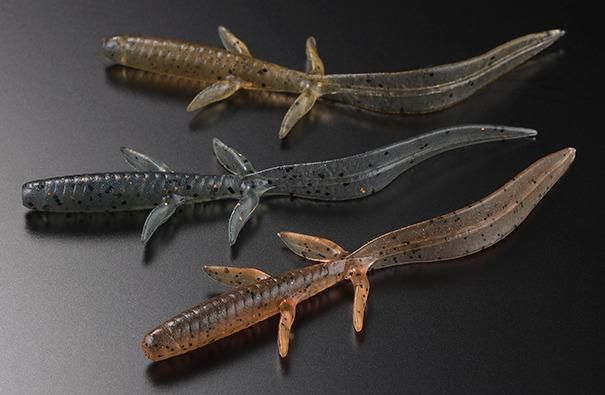 シラウオパターンの威力を知らしめた名作ソフトベイト”シザーコーム”の設けられたシザーアームの効果を徹底検証し、2対のシザーアームが発生させるナチュラルな微波動とバランスの最適化を実現。また、細身のボディと縦方向にセットされたリーチテールにより、ローリングと微波動をボディからテールの先端まで伝えて存在をアピールします。