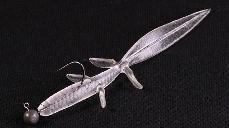 ジグヘッドやドロップショットリグに対応しますが、0.9g以上のジグヘッドと組み合わせることで、カーブフォールさせるだけでシザーアームが水を受けボディ全体が細かく振動し、誰でも簡単にシラウオの微波動アクションを再現できます