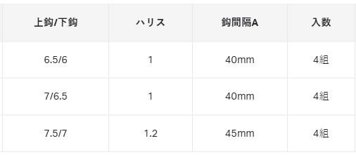 鈎には掛かりが良く、根掛かりしにくく、良型にも対応する中軸の「T1全」を採用。ナノスムースコートにより抜群の刺さり込みを実現しました。「上鈎・下鈎とも同号数」の仕様で、下にもしっかり掛かります。ハリスには耐久性が高く、トラブルが少ない「フロロカーボンハリス」を使用しています。錨・チラシに続く第3の選択肢として、一日中快適に使用できます。