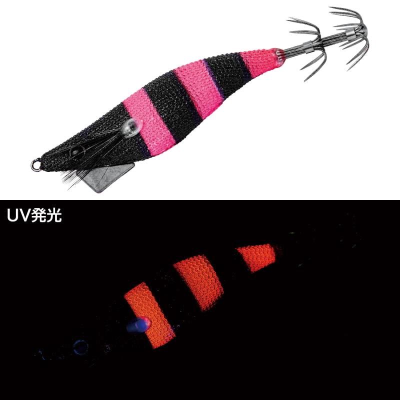 抜群の潮乗り性能と姿勢安定性を兼ね備えたエギ型ドロッパー。潮の速い状況でのイカメタル、2.5号エギでは反応させきれないタフコンディション時のオモリグ等、このボディーサイズでしか成し得ないスローフォールとシルエットによるアプローチが可能です。また、2.5号エギとの「サイズローテーション」も有効です。
