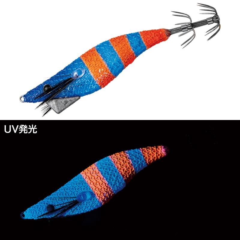 抜群の潮乗り性能と姿勢安定性を兼ね備えたエギ型ドロッパー。潮の速い状況でのイカメタル、2.5号エギでは反応させきれないタフコンディション時のオモリグ等、このボディーサイズでしか成し得ないスローフォールとシルエットによるアプローチが可能です。また、2.5号エギとの「サイズローテーション」も有効です。