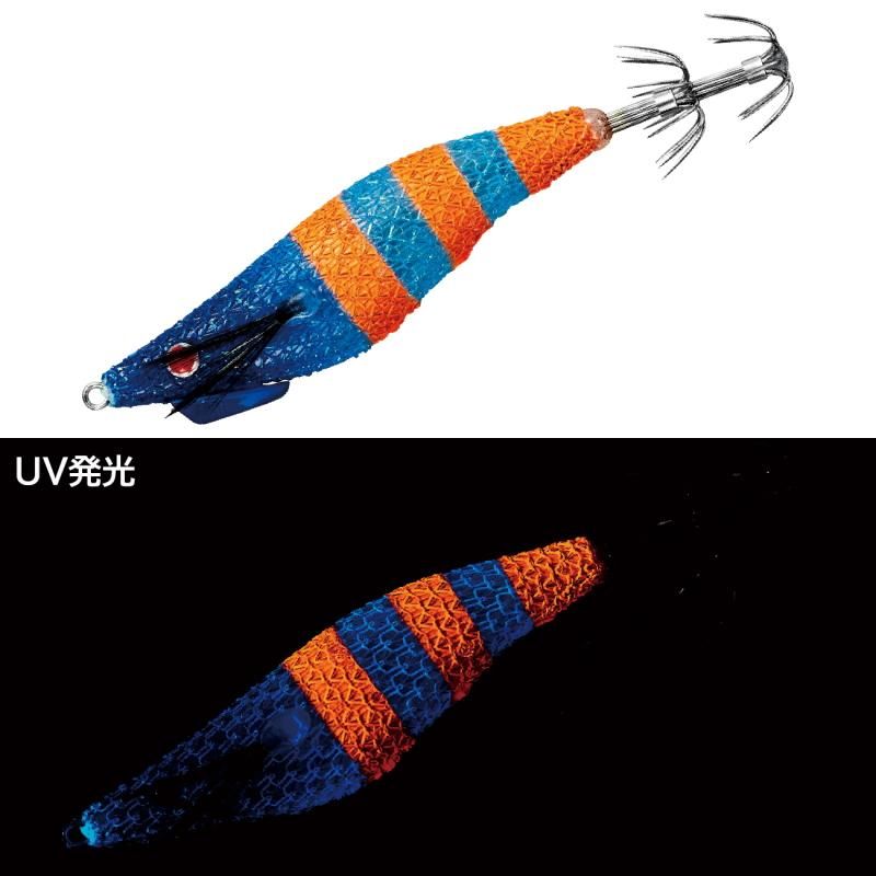 エギ型ドロッパーの特徴である、適度に水流を受け、安定した姿勢をキープ可能な性能を継承しつつ、イカメタル専用ドロッパーとしてアレンジを加えました。敢えて僅かにボディー外部に露出させたバランサーウエイトにより、イカの抱きやすい理想の水中姿勢を演出しつつ、誘いに対するレスポンスの良さを両立。ボディーサイズはエリア、状況を選ばない80mmサイズに設定しており、高活性時のリアクション狙い、浅ダナ、遅潮時などイカメタルが有効となる状況に適したスペシャルモデルです。