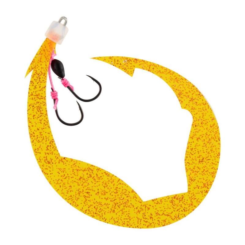 シルエットの大きさと強波動により遠くの魚にもアピールし、先端の独自カットによる不規則な動きがスレた魚にも口を使わせる。