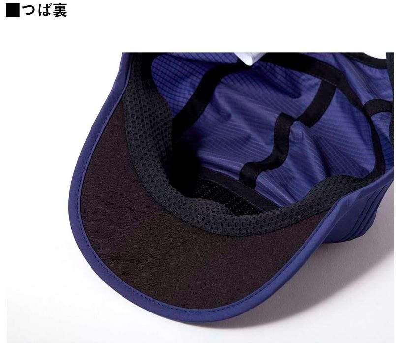 より快適なバランスを保つために表面と裏面を異なる密度の生地での二層構造にして、風は通しにくく蒸れを逃しやすい。サイズ調整はスピンドル紐で片手でも調整しやすい。
