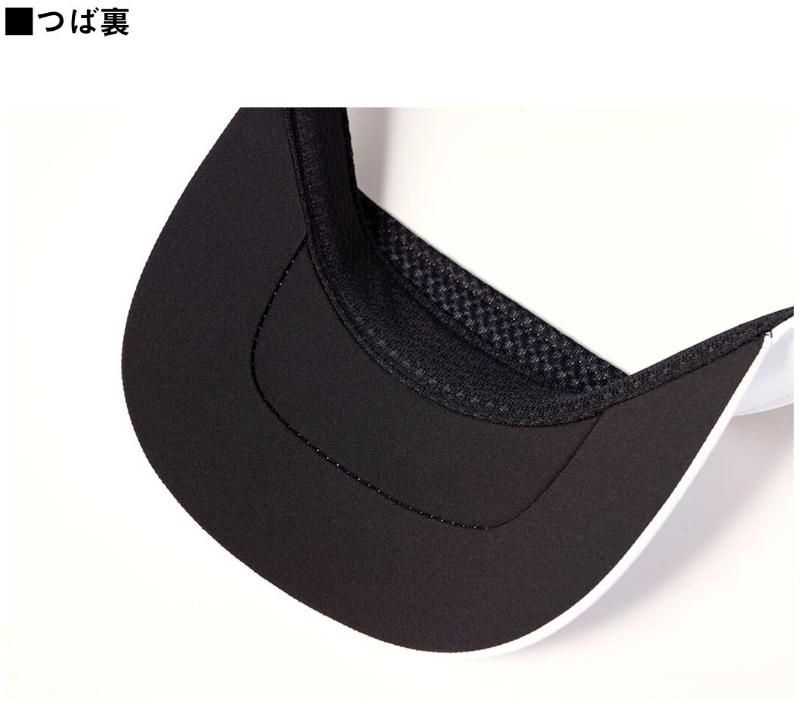 光の反射を抑えるツバ裏ブラック仕様。フロントロゴはリフレクターを採用。つばの根本をくり抜き、頭へのあたりを軽減することで快適に着用可能。