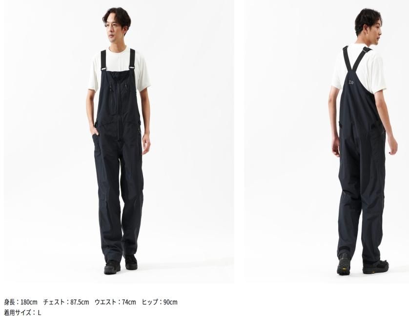 リップストップ生地のしっかりとした2.5層レイン生地を採用。裏地メッシュ付きで肌離れよく、快適に着用可能。耐久撥水性能により透湿性能を保ちやすく、快適に着用可能。サスペンダー付きのビブタイプのパンツで、ずり落ちず、動きやすい。パンツのウエスト両脇にサイズ調整用タブを搭載し、ウエストのフィット感を素早く調整可能。マットな生地感で普段にも着やすいデザイン。腰ポケット位置をサイドにすることで、座った際にもポケット内の小物が干渉しにくい。フロントには上下から開閉できる止水ファスナーを採用。フロントファスナー下には三角マチを設け、水の浸入を軽減。