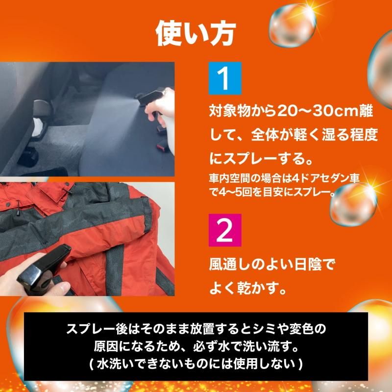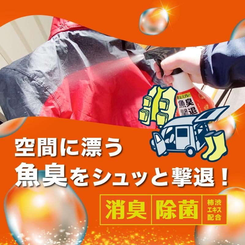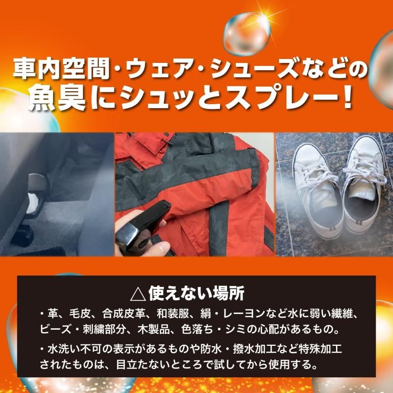 車内空間・ウェア・シューズなどから臭う魚臭にシュッとスプレーして消臭。