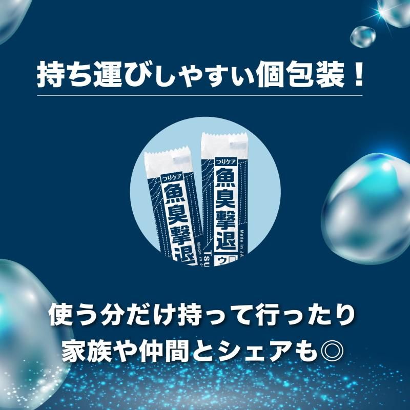 個包装のウエットタオルで釣り場の後片付け楽々。国産ヒノキ精油配合で、釣具についた魚臭をしっかり消臭。