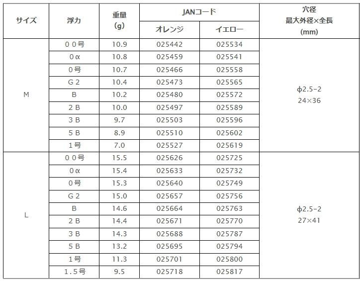 Mサイズは00号から1号まで、Lサイズは00号から1.5号までの浮力設定。特にご要望の多かったイエロートップが、全ての浮力において選択可能です。合計38アイテムのラインナップから、全天候・全フィールドコンディションに合わせた最適な1個がお選びいただけます。