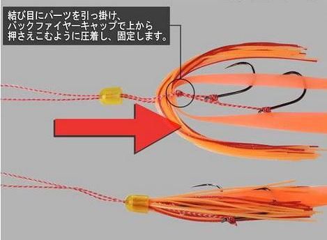 “バックファイヤーキャップ”は仕掛けのループにパーツを通すだけの簡単な作業で、