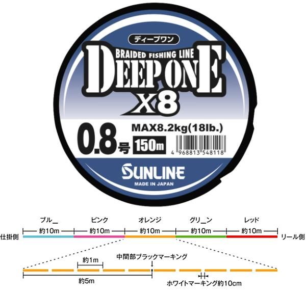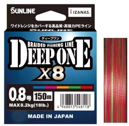 サンライン ディープワン×8 HG 150m 0.8号 マルチカラー / DEEP ONE×8 PEライン 釣具 メール便可 【本店特別価格】