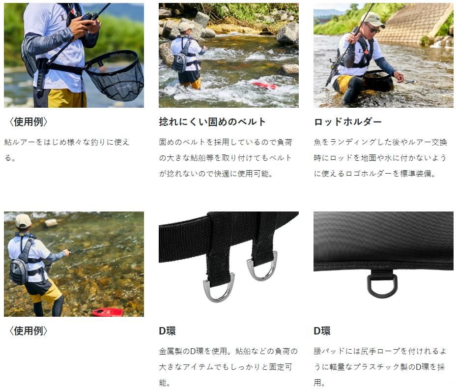 アユルアーに必要なランディングネットや鮎舟を装着できるベルト