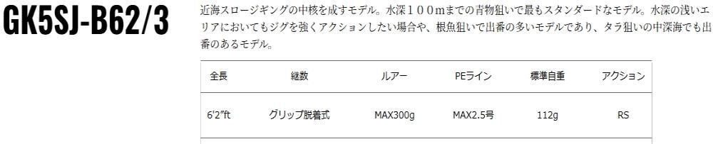 メジャークラフト ジャイアントキリング 5G スロージギングモデル GK5SJ-B62/3 (ベイト) / majorcraft 【本店特別価格】