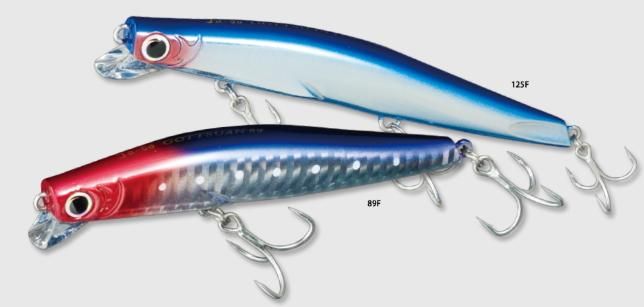 固定後方重心のフローティングタイプ。0〜40cmと浅い潜行レンジは河川や干潟、港湾部シャローエリアといったフィールドの表層を意識したシーバスに合わせたセッティング。小さなボディながらそのバラエティに富んだ状況対応能力は横綱級をも翻弄するポテンシャルを秘めています。“ただ巻き"に特化した89Fは、ロッドを下げ潜らせることで適度なウォブンロールアクションと、スローピッチな振りでシーバスの猛追を違和感なくバイトへと導きます。飛距離を確保しつつ着水直後の立ち上がり良さも考慮したウェイトバランスはロッドポジション次第で細かいレンジ攻略が可能になり、デッドスロ〜スローのスピード域では引き波を立てて引いてきたり水面直下をドリフトさせて引いてきたりと、より水面に近いレンジで流れの中に潜んだシーバスを攻略。また、抜群の安定感によりデイゲームの速巻き&ジャークや急流に潜む魚をもターゲットの視野に入れたバーサタイルミノーです。