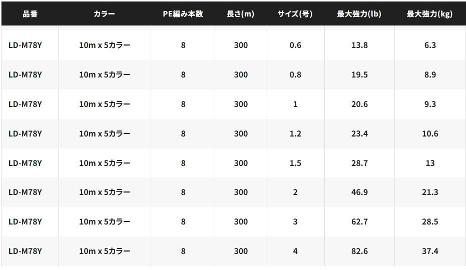 シマノ LD-M78Y ハードブル8+ 10m×5カラー 1号 300m / PEライン shimano 釣具 メール便可 【本店特別価格】