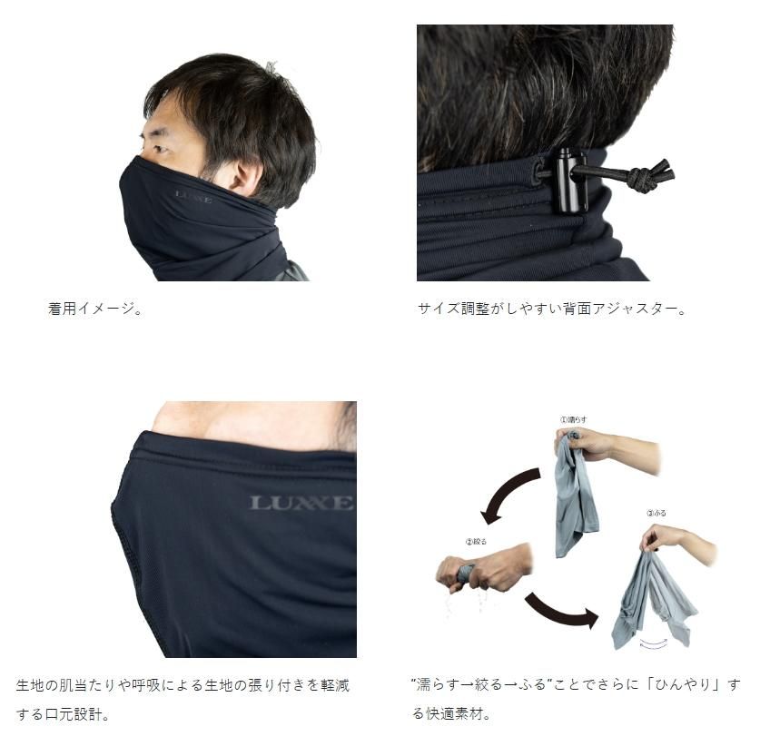 ●優れた接触冷感性素材を採用し、水で濡らすことでさらに冷感性が高くなるフェイスカバー。夏シーズンも快適に過ごせる。
