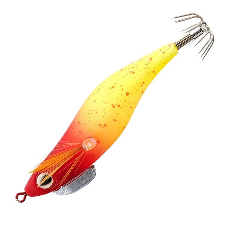イカが小さいベイトを好んで捕食している時やボリュームのあるドロッパーに反応が鈍い状況ではボディサイズがコンパクトな大剣ドロッパー1.8号が効果的。絶妙なウエイトバランスを有したエギ型ドロッパーで潮に馴染みフワフワと漂い捉えやすいベイトを演じイカの興味を引き付けます。海況、イカの活性により大剣ドロッパー2.5号とのサイズローテーションがイカに飽きられる事なくより多くのアタリを出す秘訣です。※大剣ドロッパーシリーズはイカメタルリグの上側から出ている枝素に取り付けてご使用いただく為のエギ型ドロッパーです。