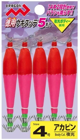 マルシン漁具 徳用ウキスッテ5本入 アカピン 4号 / イカメタル用スッテ メール便可 【本店特別価格】