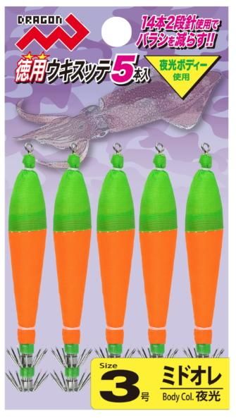 マルシン漁具 徳用ウキスッテ5本入 ミドオレ 3号 / イカメタル用スッテ メール便可 【本店特別価格】