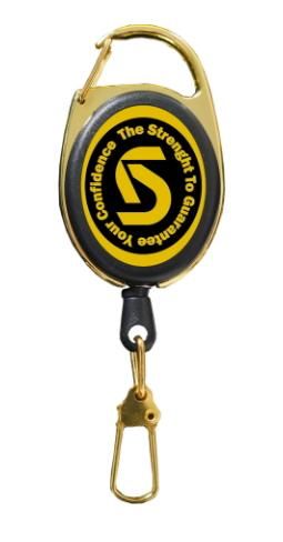 ループ部に簡単に掛けられるカラビナ付のフックリーラーです。